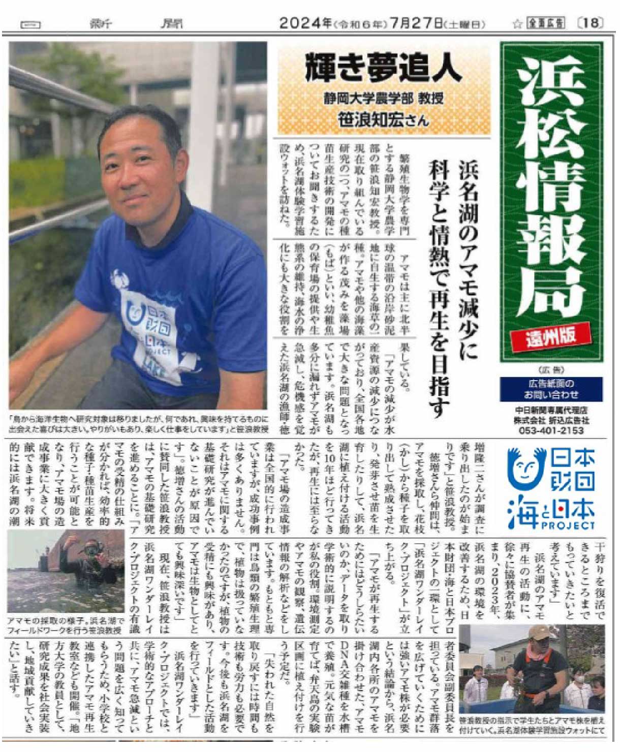 浜名湖を守れ!アマモ再生へ向けた
