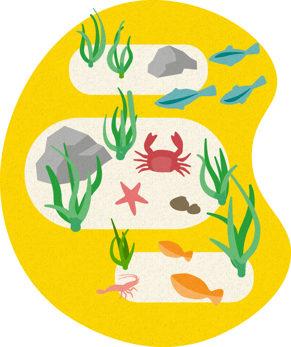 - 繁殖力のあるアマモ場を形成する、大量の苗づくりを実証実験します。
